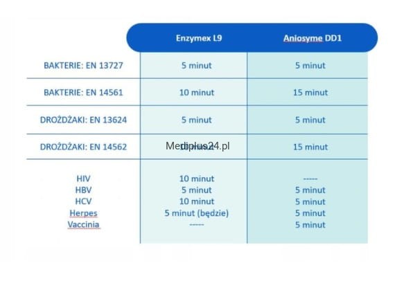 - szerokie spektrum biobójcze w czasie 10 minut: bakterie, prątki, drożdżaki, wirusy (HIV, HBV, HCV, Vaccinia/Corona, Herpes)
