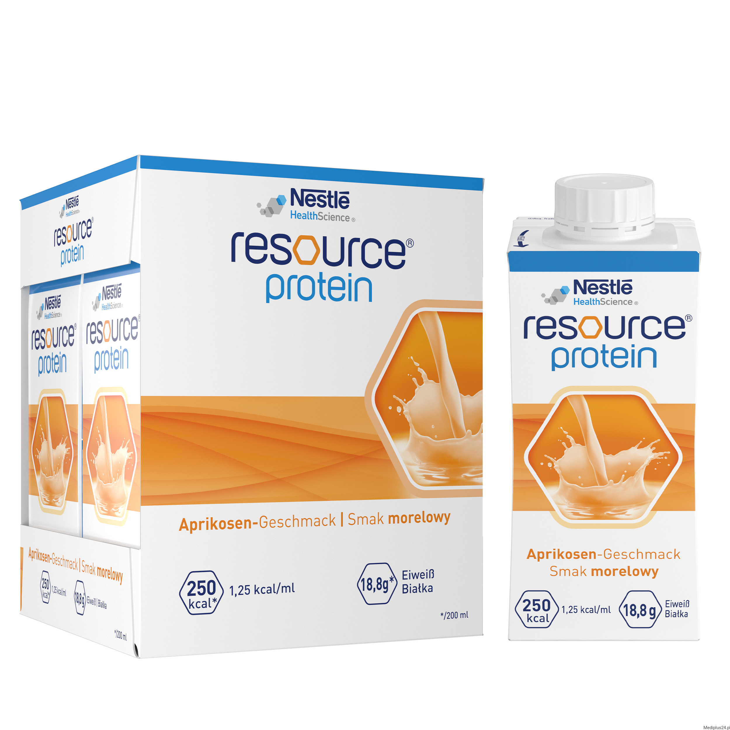 NESTLÉ Resource Protein – specjalistyczny preparat odżywczy, smak morelowy | 4 × 200 ml